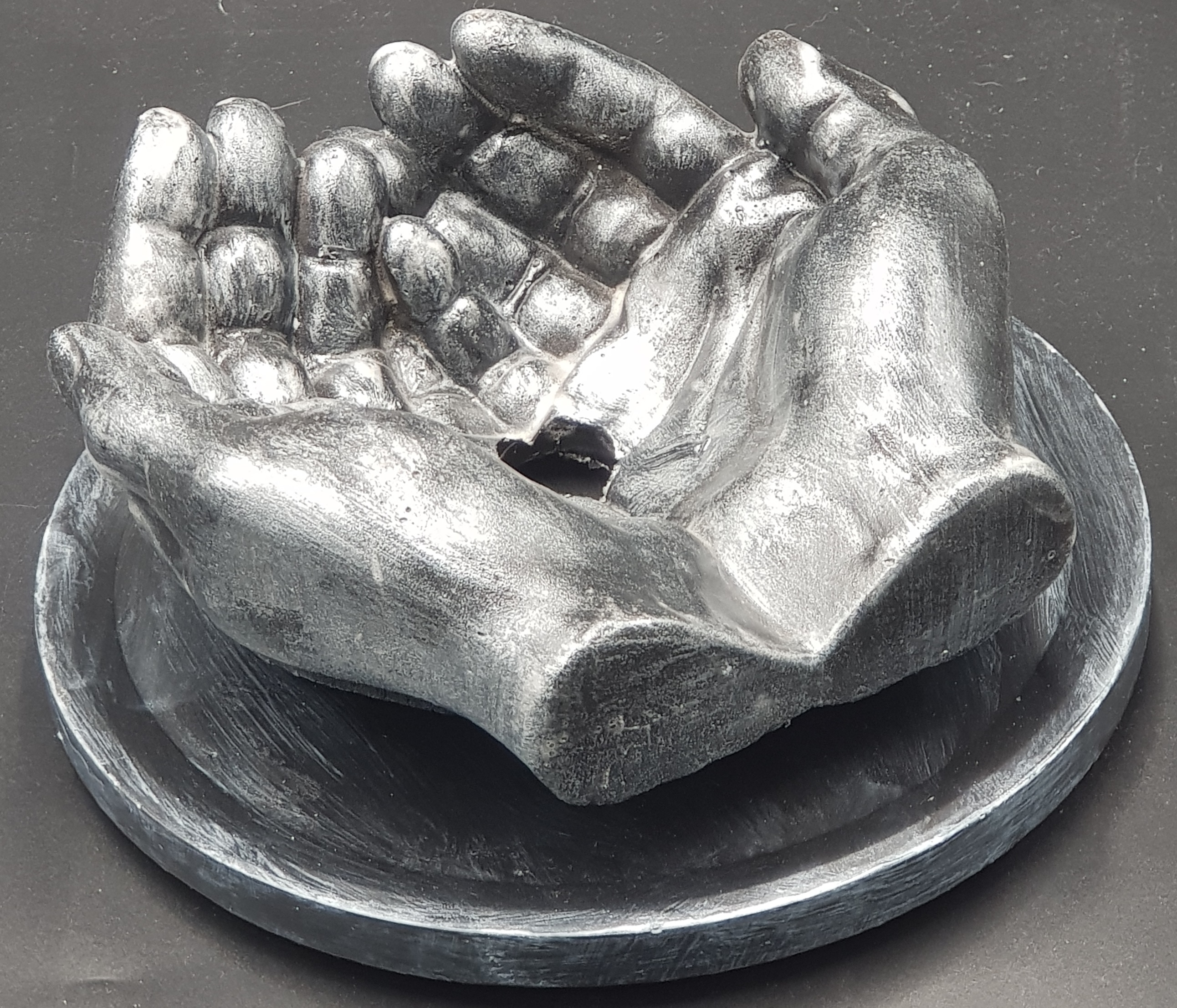 Farbe: Silber, Material: Gips patiniert, Größe: ca. Dm 19,00 x 9,00 cm, Preis: € 27,00 pro Stück, 1 Stück auf Lager, Weitere auf Anfrage (Fertigung 4 bis 6 Tage)