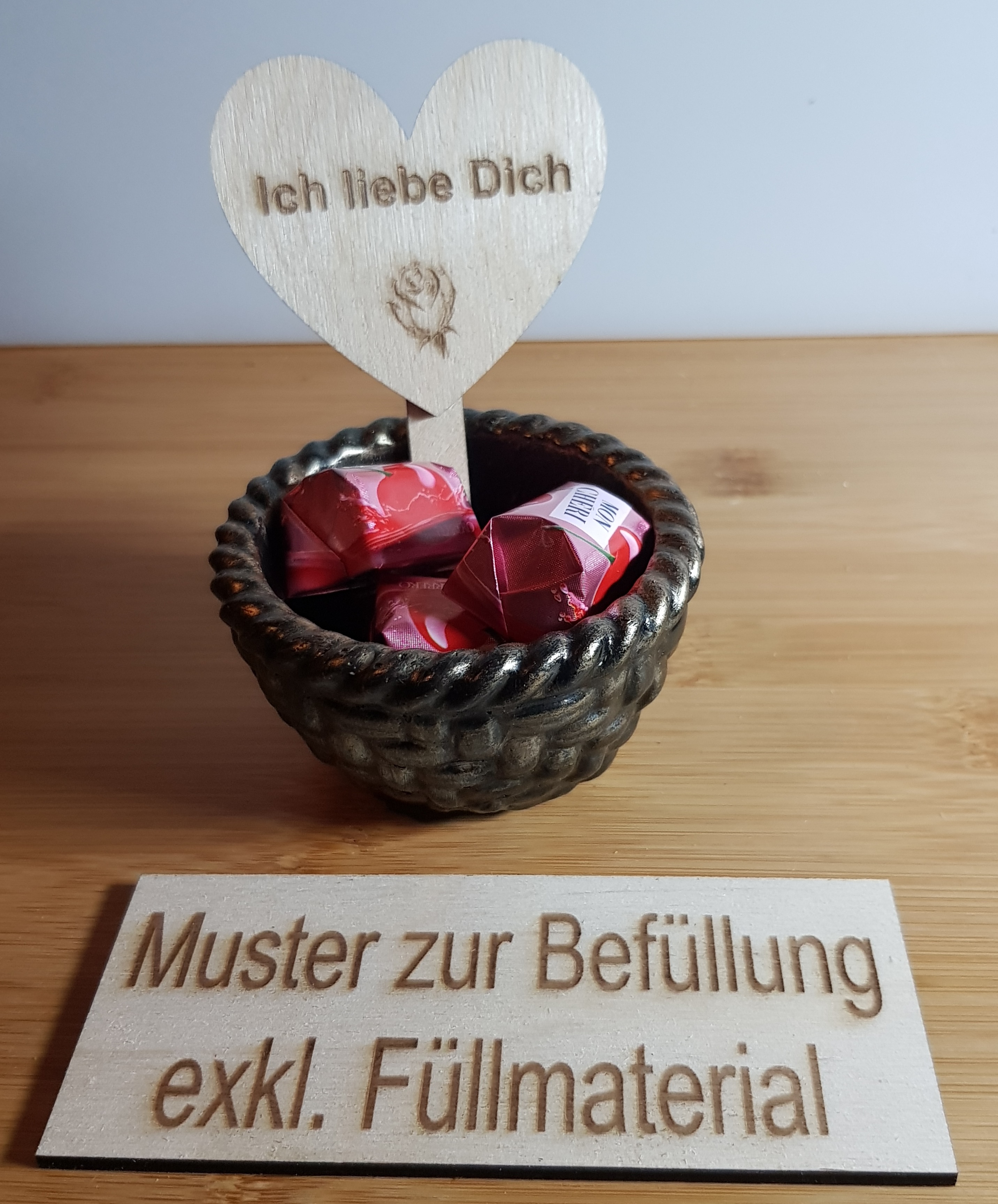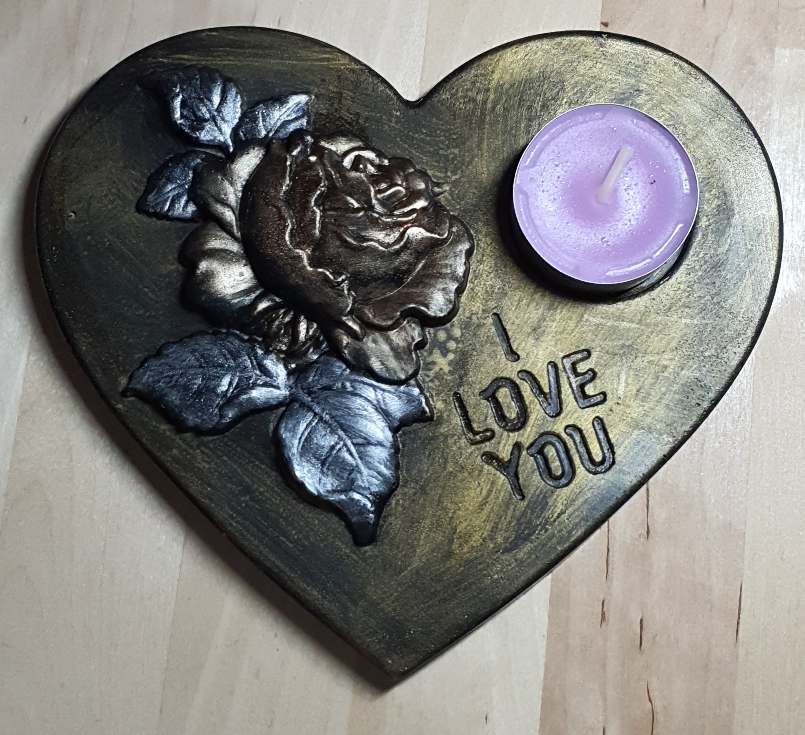 Herz mit Teelichtausnehmung und dem Spruch „I love you“